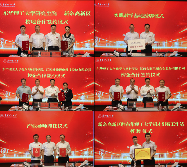 活动现场,校地双方签署了研究生联合培养、校企合作等多项协议,并互授“新余高新区驻AK平台招才引智工作站”和“实践教学基地”牌匾。杨波为新余市两位技术专家颁发“产业导师”聘书。