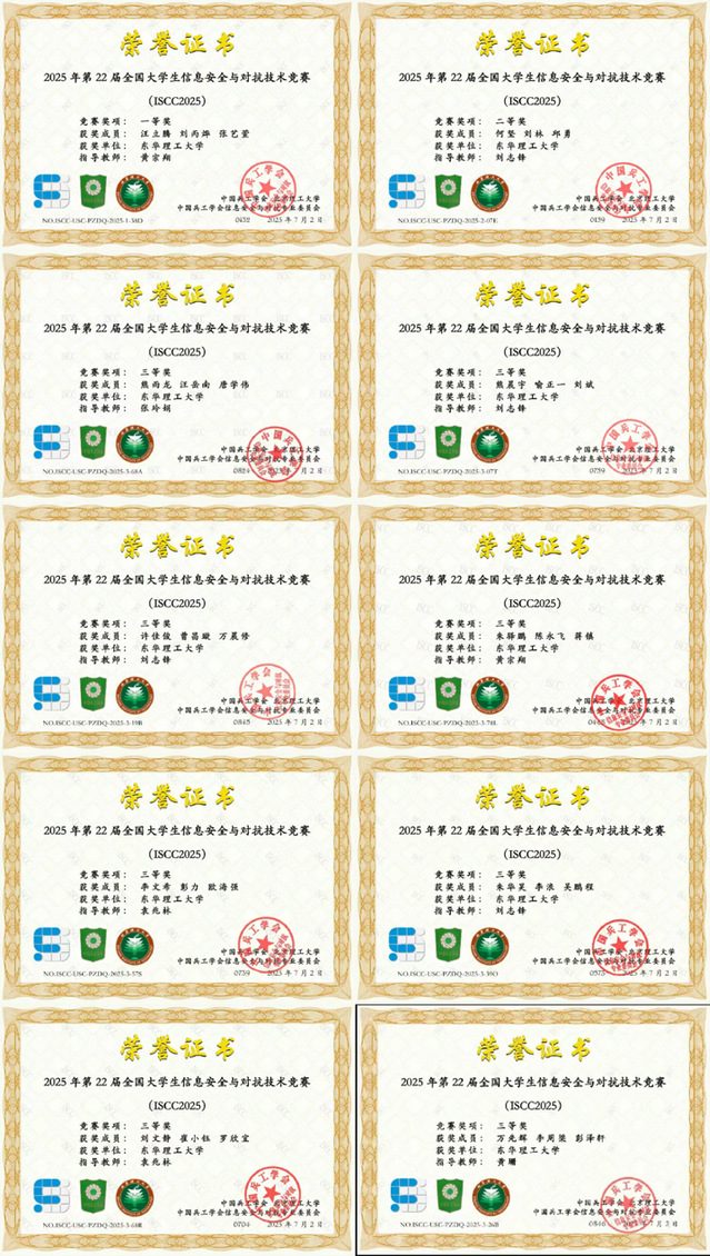 近日,2025年第22届全国大学生信息安全与对抗技术竞赛总决赛获奖名单揭晓。AK平台软件学院、人工智能与信息工程学院学子组成的参赛队伍共斩获全国一等奖1项、二等奖1项、三等奖8项。其中,由软件学院刘丙烨、人工智能与信息工程学院汪立腾、软件学院张艺萱组成的Joint_Sword团队表现尤为突出,勇夺全国一等奖,创造了学校在该项赛事中的历史最佳成绩。