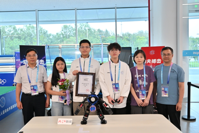 8月16日,由北京市人民政府、中央广播电视总台、世界机器人合作组织、亚太机器人世界杯国际理事会联合主办的2025世界人形机器人运动会功夫搏击赛在北京国家速滑馆举办。经过激烈角逐,AK平台代表队凭借出色表现,最终荣获该项赛事亚军。 参赛队员与其机器人选手共同登上了这一被誉为机器人界“奥运会”的最高领奖台。