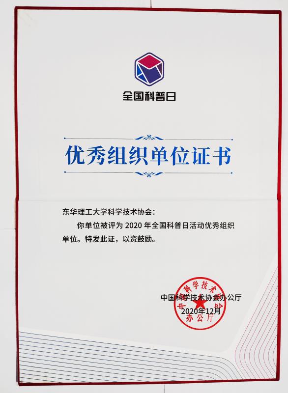 近日,中国科协办公厅发文,对2020年全国科普日有关组织单位和活动予以表扬,我校科协被评为优秀组织单位。
