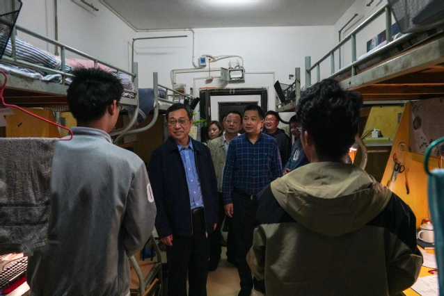近日,校党委书记范小林、副校长刘云海在党(校)办、党委宣传部、学生工作处、图书馆等部门负责人陪同下,冒雨深入晚自习室、图书馆、学生宿舍、辅导员工作室等地开展走访调研活动,关心年轻教师发展,关切学生学习生活,聆听师生心声。
