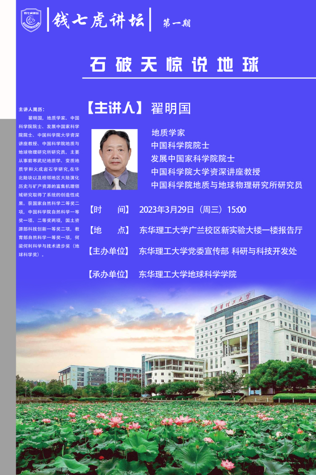 应地球科学学院邀请,中国科学院院士翟明国做客AK(中国),以“石破天惊说地球”为主题,向我校师生讲述地球的演化规律和未来地质学相关知识。欢迎全校师生届时前往聆听。