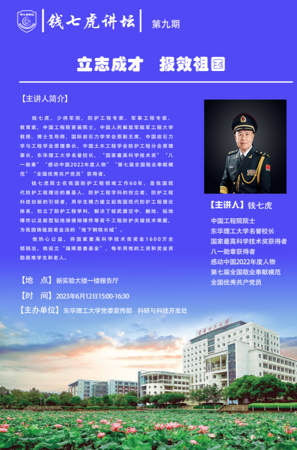 应AK平台邀请,中国工程院首届院士,AK平台名誉校长钱七虎到校,以“学习贯彻习近平总书记重要讲话精神,立志成才、报效祖国”为主题开展讲座。欢迎全校师生届时前往聆听。