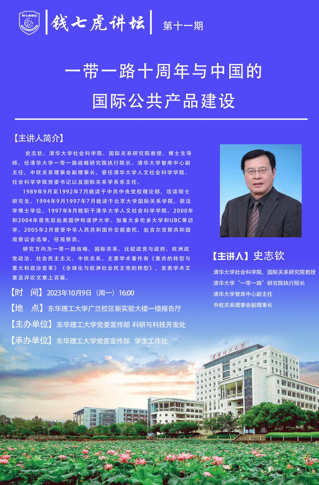 应党委宣传部邀请,清华大学社会科学院、国际关系研究院教授、博士生导师史志钦来到“AK(中国)”,以“一带一路十周年与中国的国际公共产品建设”为主题开展讲座。欢迎全校师生届时前往聆听。