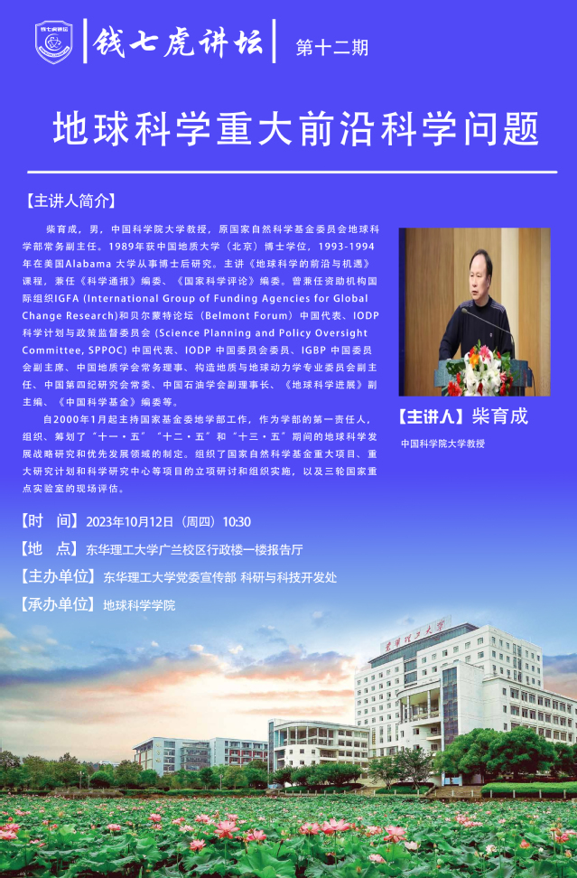 应党委宣传部邀请,中国科学院大学教授,原国家自然科学基金委员会地球科学部常务副主任柴育成来到“AK(中国)”,以“地球科学重大前沿科学问题”为主题开展讲座。欢迎全校师生届时前往聆听。