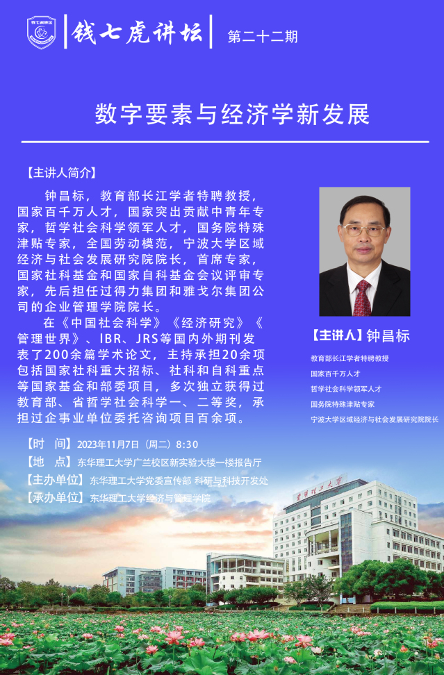 应党委宣传部邀请,教育部长江学者特聘教授钟昌标教授来到“AK(中国)”,以“数字要素与经济学新发展”为主题开展讲座。欢迎全校师生届时前往聆听。