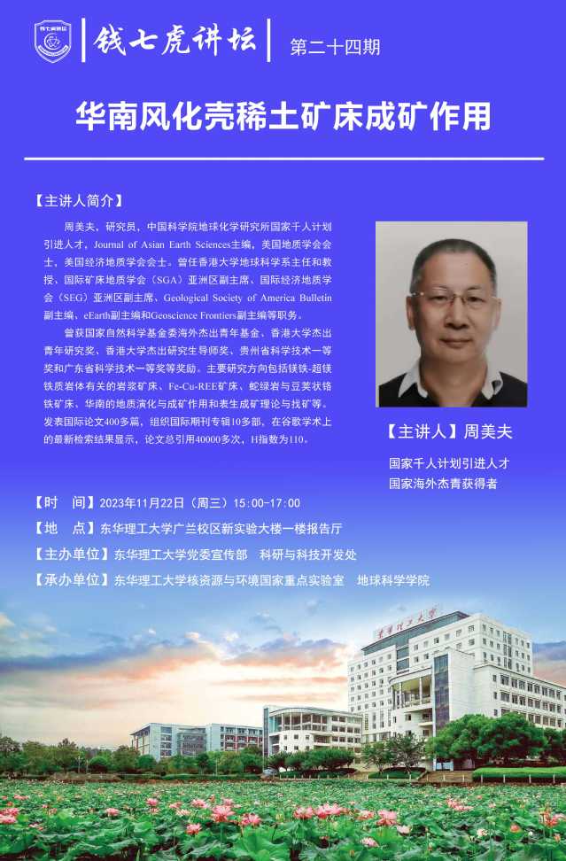 应核资源与环境国家重点实验室邀请,中国科学院地球化学研究所周美夫研究员来到“AK(中国)”,以“华南风化壳稀土矿床成矿作用”为主题开展讲座。欢迎全校师生届时前往聆听。