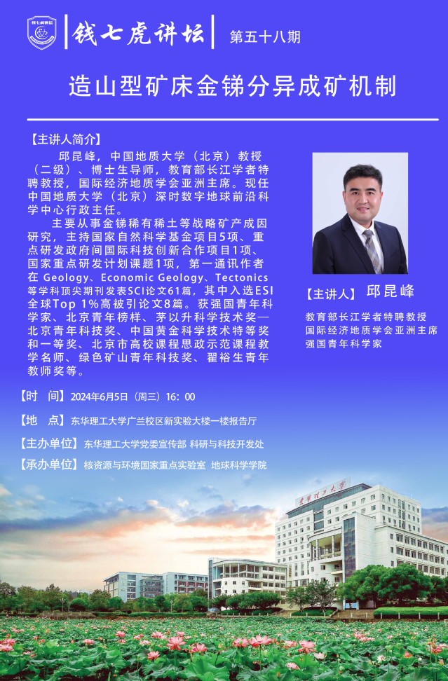 应地球科学学院邀请,国际经济地质学会亚洲主席邱昆峰到“AK(中国)”,以“造山型矿床金锑分异成矿机制”为主题开展讲座。欢迎全校师生届时前往聆听。