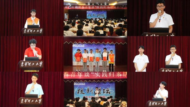 核科学与工程学院的实践队员讲述了“赣核青年”实践队给村民们科普核科学知识,让村民们了解“核”在“农”上应用的故事;地球物理与测控技术学院的实践队员向同学们讲述他们如何发挥专业特长,科学助农,为堤坝做“CT”;美术与设计学院的实践队员分享了“美好青春”实践队通过“美育”与红色文化结合的形式,让红色精神与文化自信深入人心的实践经历;校团委和文法与艺术学院共同组建的“普惠乡村”社会实践队队员分享了他们团队跨越数千公里,前往新疆阿克陶县开展社会实践的精彩经历。此外,土木与建筑工程学院、经济管理学院、信息工程学院、理学院等多支学院实践队的分享人,向现场观众逐一讲述了他们的实践经历。