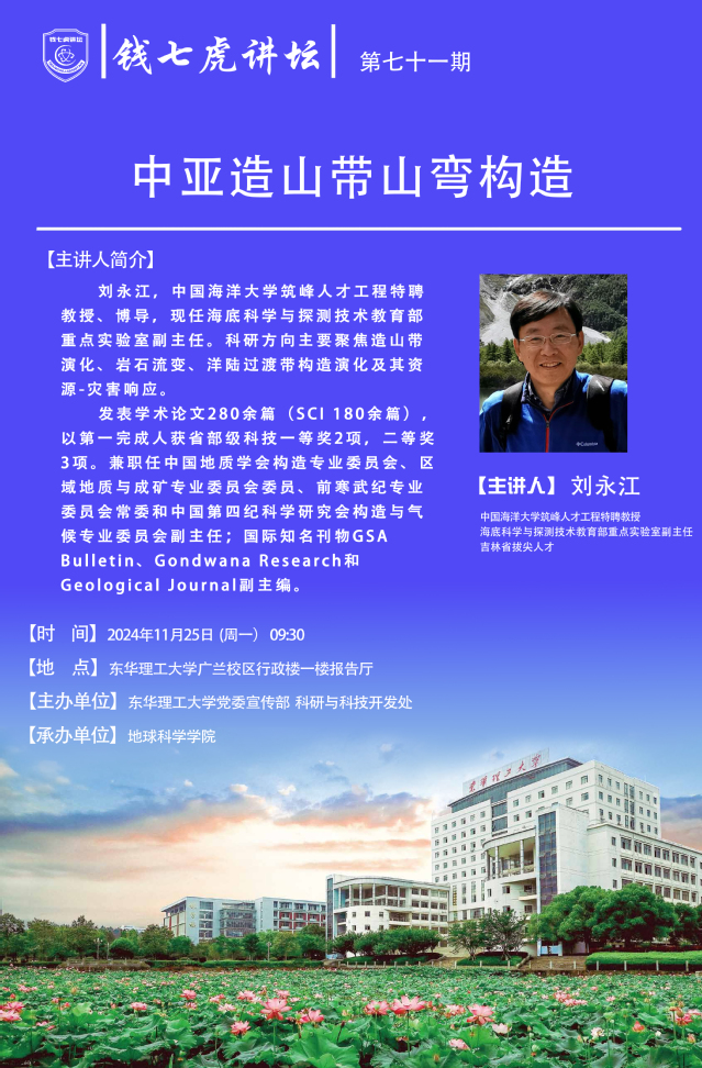 应地球科学学院邀请,中国海洋大学筑峰人才工程特聘教授、博导刘永江到“AK(中国)”,以“中亚造山带山弯构造”为主题开展讲座。欢迎全校师生届时前往聆听。
