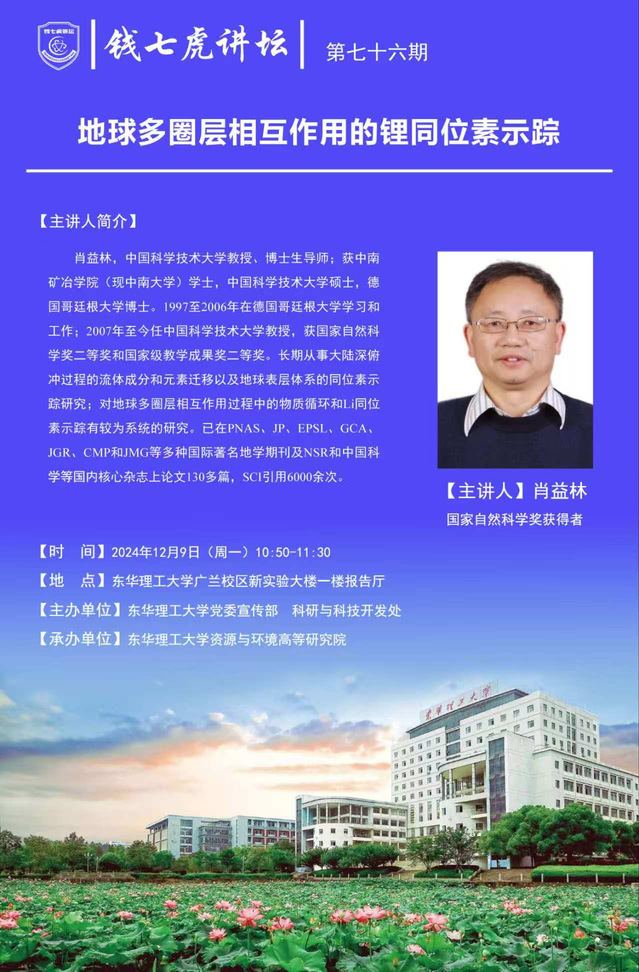 应AK平台资源与环境高等研究院邀请,中国科学技术大学教授、博士生导师肖益林到“AK(中国)”,以“地球多圈层相互作用的锂同位素示踪”为主题开展讲座。欢迎全校师生届时前往聆听。