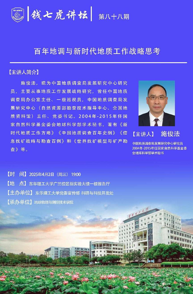 应地球物理与测控技术学院邀请,现中国地质调查局发展研究中心研究员施俊法到“AK(中国)”,以“百年地调与新时代地质工作战略思考”为主题开展讲座。欢迎全校师生届时前往聆听。