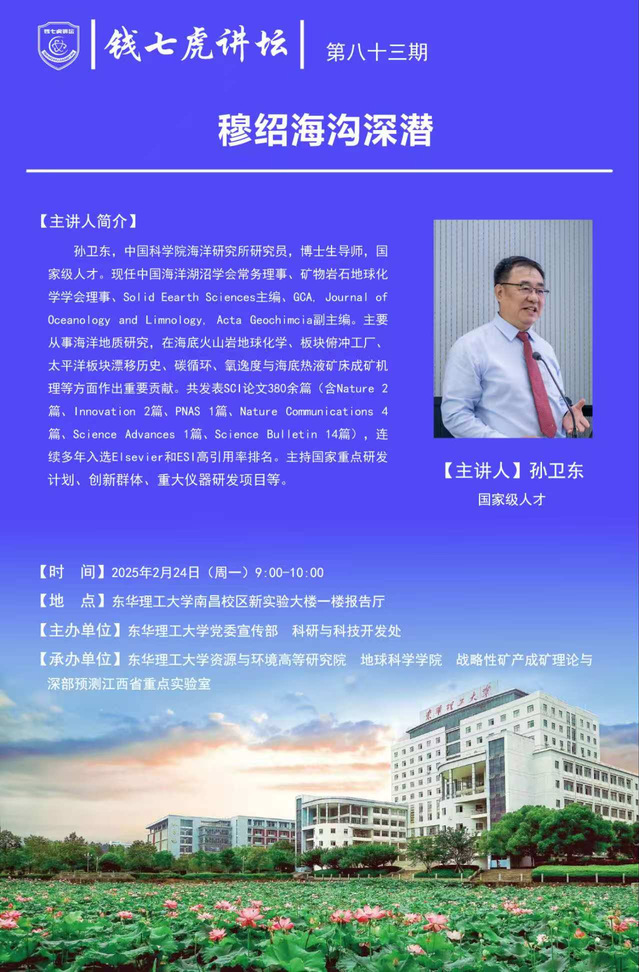 应AK平台资源与环境高等研究院、地球科学学院、战略性矿产成矿理论与深部预测江西省重点实验室邀请,中国科学院海洋研究所研究员,博士生导师,国家级人才孙卫东到“AK(中国)”,以“穆绍海沟深潜”为主题开展讲座。欢迎全校师生届时前往聆听。