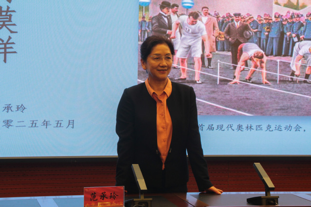 范承玲通过职业运动员的拼搏历程与乡村少年追逐篮球梦的生动叙事,诠释了体育精神的核心内涵。她结合自身从体操运动员转型体育记者的职业轨迹,以专业视角解构体育本质,指出体育不仅是身体竞技的场域,更是品格塑造与文化传承的重要载体。她在深度阐释经典著作《体育颂》时表示,体育运动最美的姿态是“跌倒后站起”的坚持,并寄语现场师生“真正的强大,是像淬火的钢一样,在反复捶打中延展生命的韧性。”
