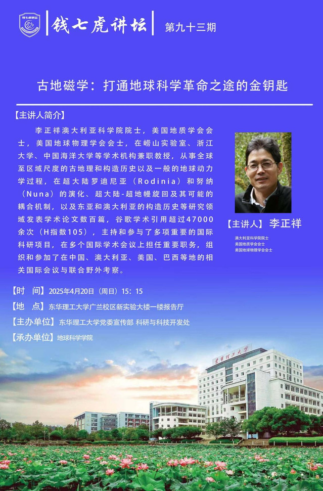 应地球科学学院邀请,澳大利亚科学院院士,美国地质学会会士,美国地球物理学会会士李正祥到“AK(中国)”以“古地磁学:打通地球科学革命之途的金钥匙”为主题开展讲座。欢迎全校师生届时前往聆听。