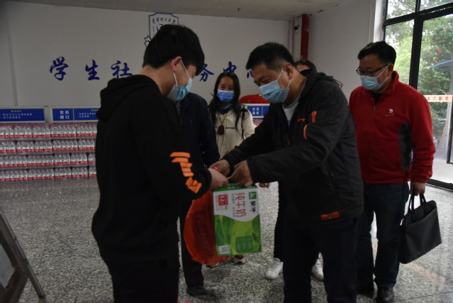 “现在家里的情况怎么样”“能适应现在的生活节奏吗”“还有什么困难么”张福庆耐心细致地询问学生们的生活、学习情况,同时叮嘱他们在疫情防控形势依然严峻的情况下,还要继续做好个人防护。他强调,学校会持之以恒做好各项资助工作,解决学子们学习和生活上的后顾之忧,切实保障全体学生的健康和生命安全。最后,张福庆代表学校向学生代表送上了爱心满满的礼包。