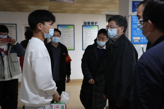 “时刻绷紧疫情防控这根弦,做好自我防护”“多多锻炼、增强体质,筑好身体的防护墙”,孙占学暖心叮嘱同学们,并鼓励他们遇到困难要及时与辅导员、班主任沟通,相信学校一定会予以全力支持,同时也希望同学们配合做好学校的各项疫情防控工作。
